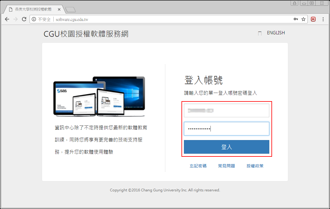 登入長庚大學全校授權網站