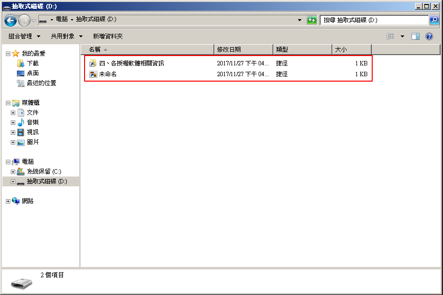 USB內出現兩個捷徑檔案,原始檔案消失不見